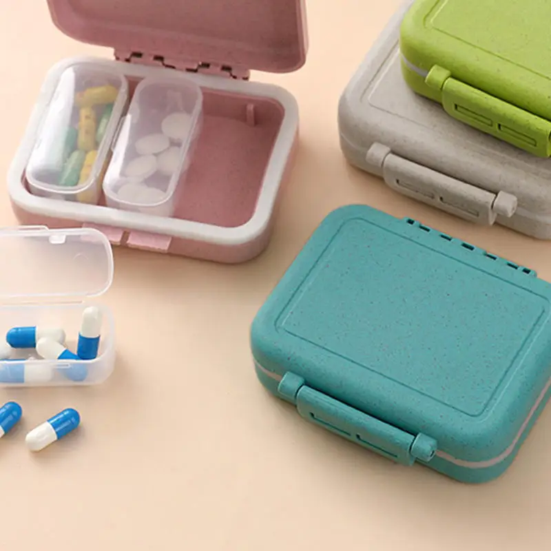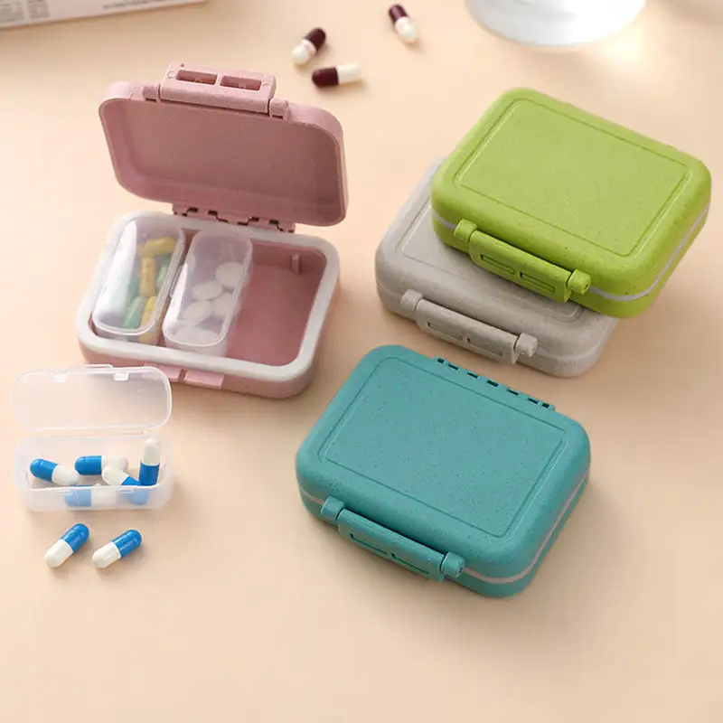 3 Grids Organizer Container For Tablets Travel Pill box With Seal Ring Small Box For Tablets Wheat Straw Container For Medicines