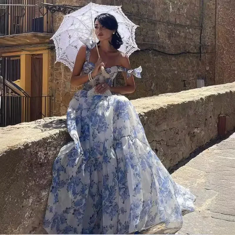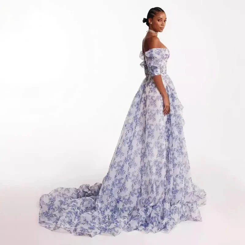 Sexy Fashion Long Sleeve Off Shoulder High Waist Corset Folds Evening Graduation Dress Robe Prom Elegant Women Long Party Dress